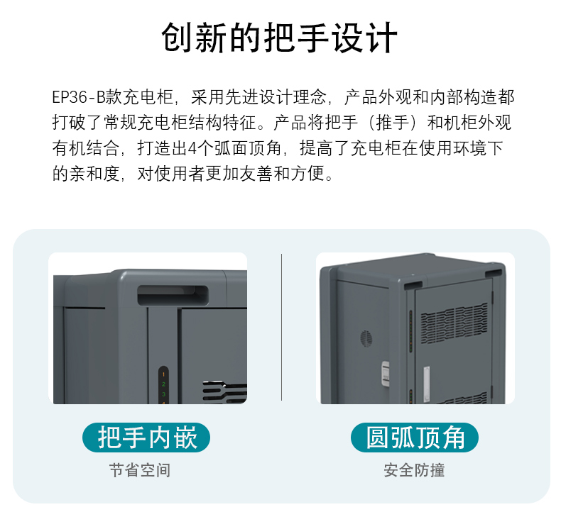 英創(chuàng)思新款PD充電柜采用先進(jìn)設(shè)計(jì)理念,產(chǎn)品外觀和內(nèi)部構(gòu)造都打破了常規(guī)充電柜結(jié)構(gòu)特征。產(chǎn)品將把手(推手)和機(jī)柜外觀有機(jī)結(jié)合,打造出4個(gè)弧面頂角,提高 了充電柜在使用環(huán)境下的親和度,對使用者更加友善和方便。